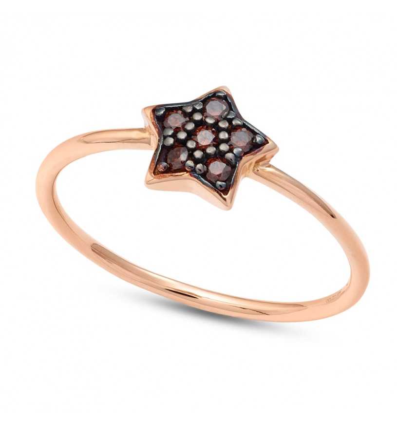 anello Ambrosia in oro rosa titolo 750% (18Kt) con centrale a forma di stella e pavè di zirconi marroni
