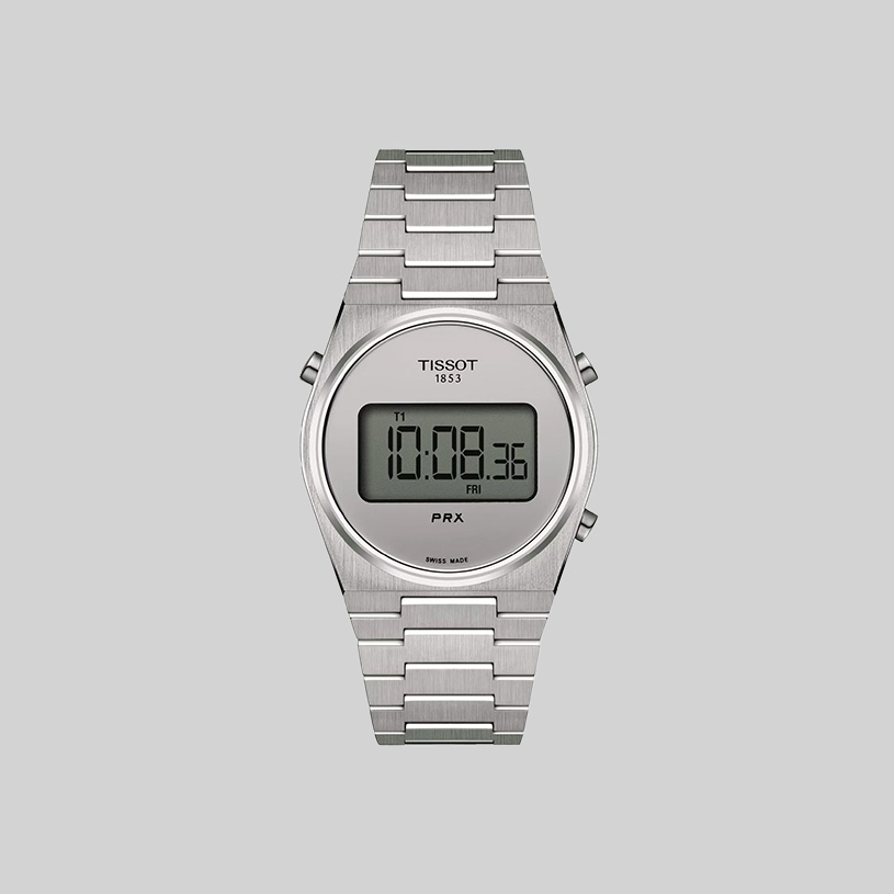 orologio TISSOT collezione PRX, orologio unisex in acciaio con funzione digitale e movimento al quarzo